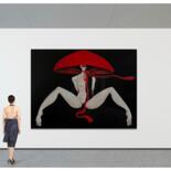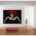 This captivating oil painting on canvas, titled "Nude in a Red Hat," is a celebration of the female form. The artist's long-standing fascination with the nude figure is evident in this bold and evocative piece. Rendered in a contemporary style with elements of surrealism, the artwork presents a unique perspective on portraiture.