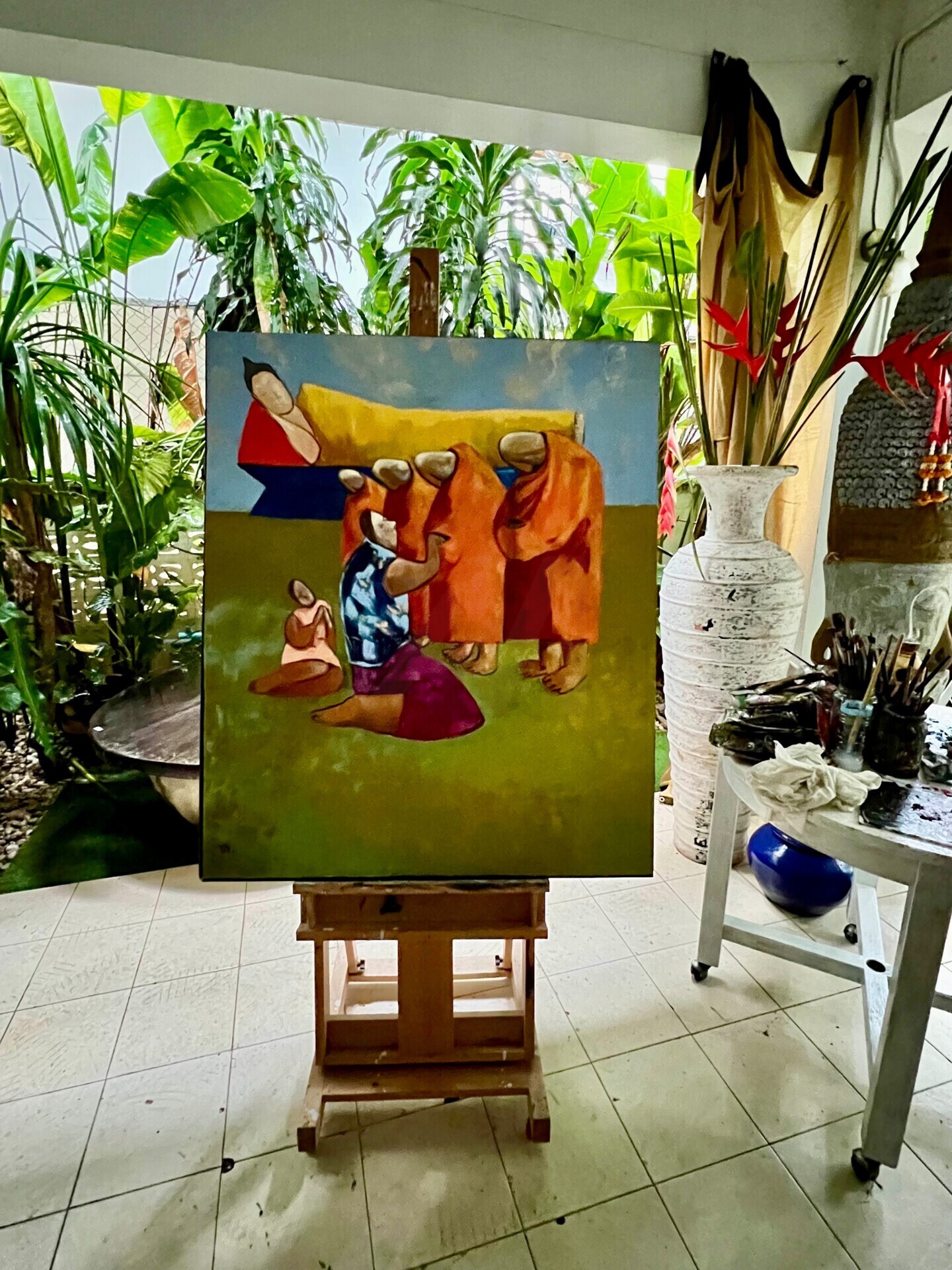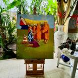 Sometimes, when I am swamped and my head is full of ideas, bouncing around trying to get out, I like to take a deep breath and stand back. It is these times that I like to paint my monks; it calms me and helps me relax. I find it very tranquil, peaceful, and it takes me back to a time I lived in a Temple.